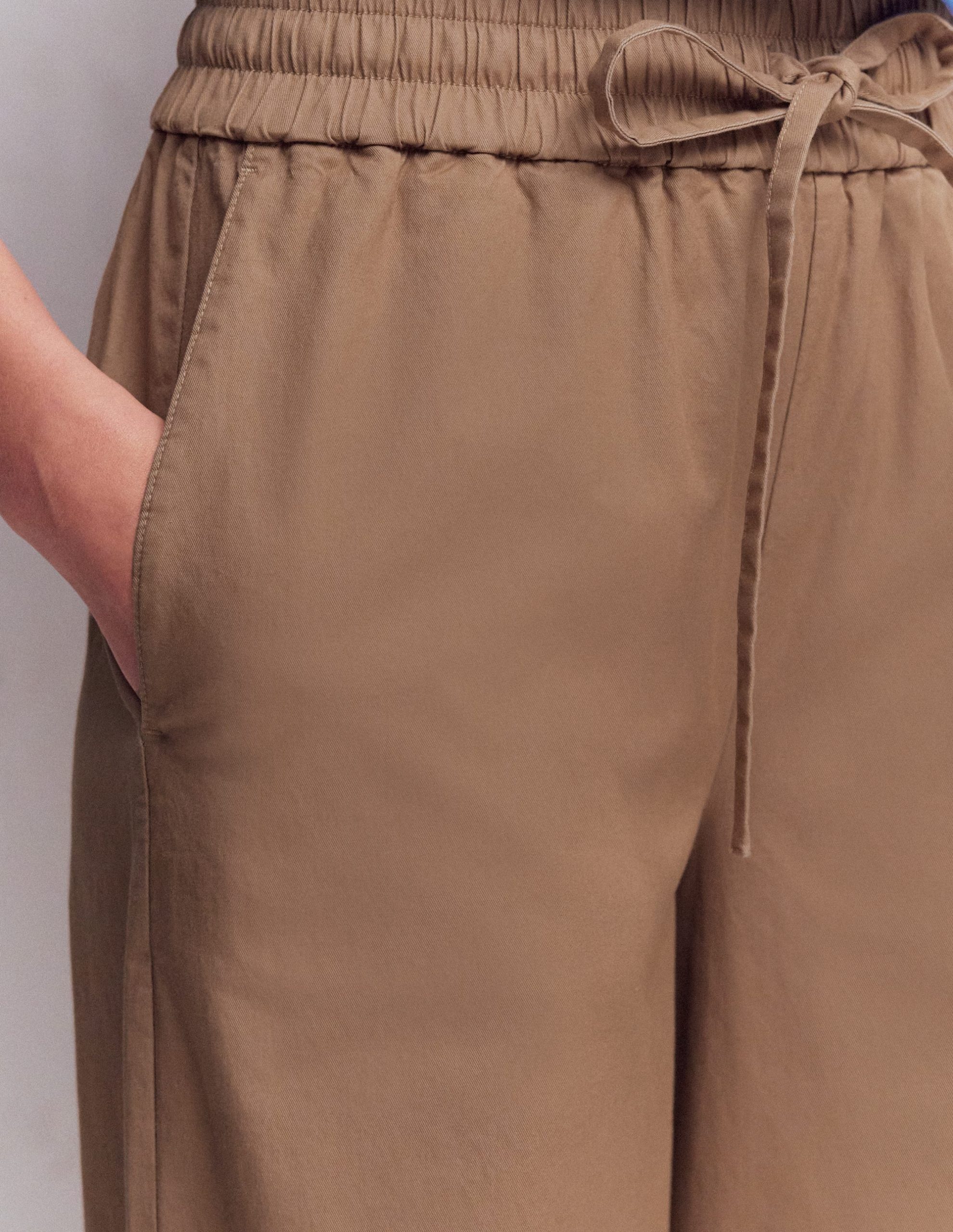 Do you sometimes wish pyjamas were acceptable daywear We’ve created the next best thing. These cotton blend trousers are cut with a wide leg and elasticated drawstring waist. The twist They look smart enough for the office. even if they feel like a Sunday lie in.