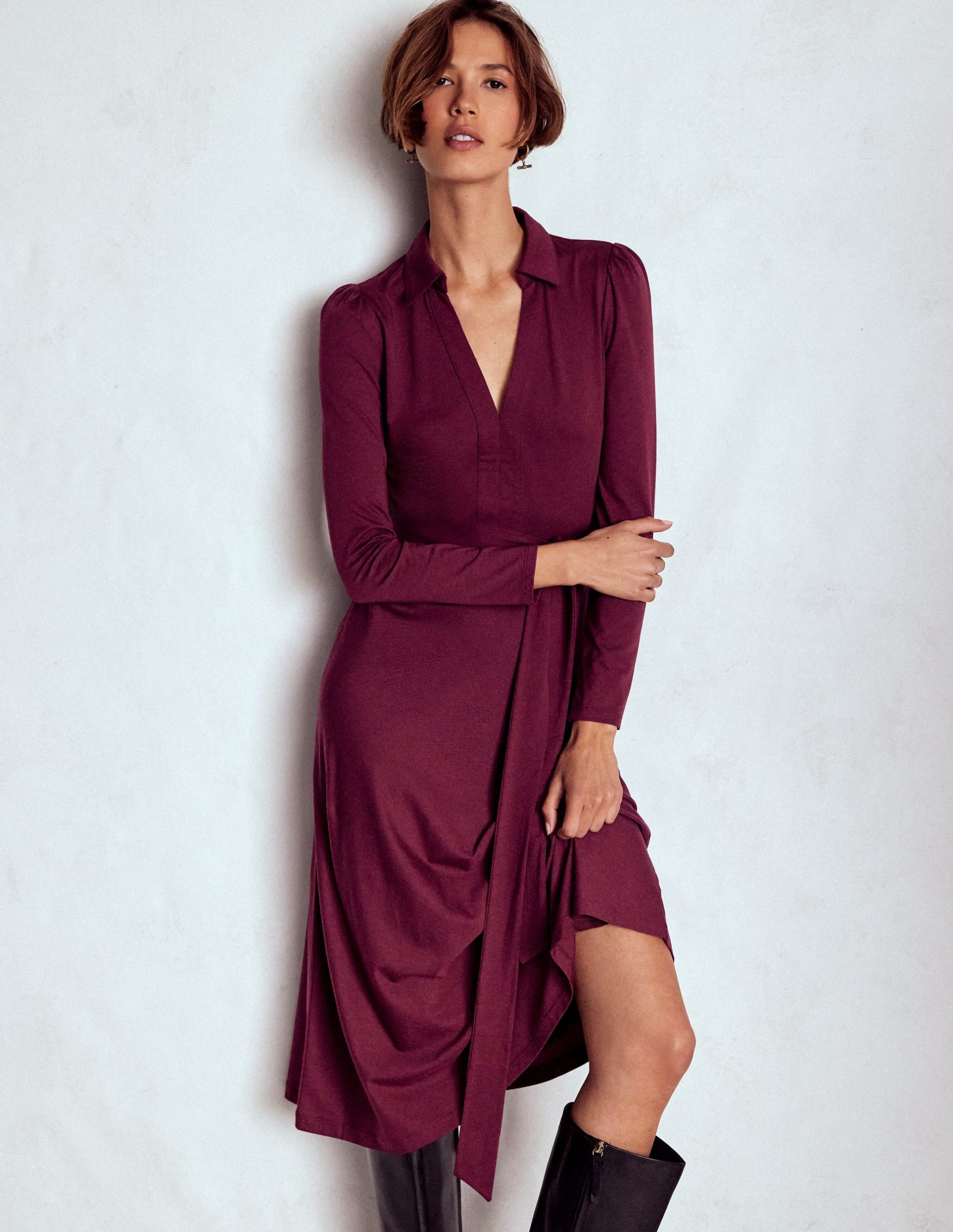 Imogen Collared Jersey Dress-Deep Wisteria