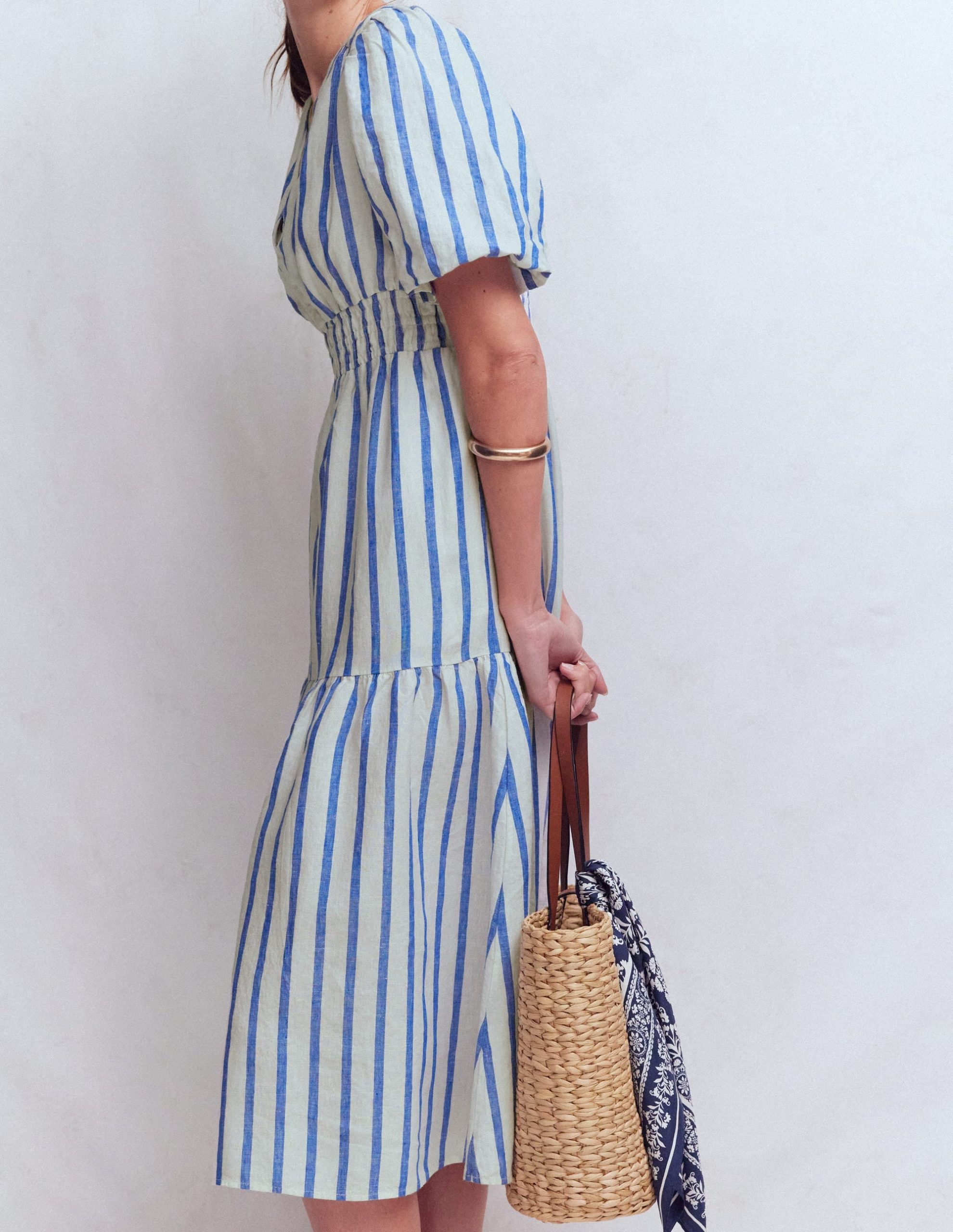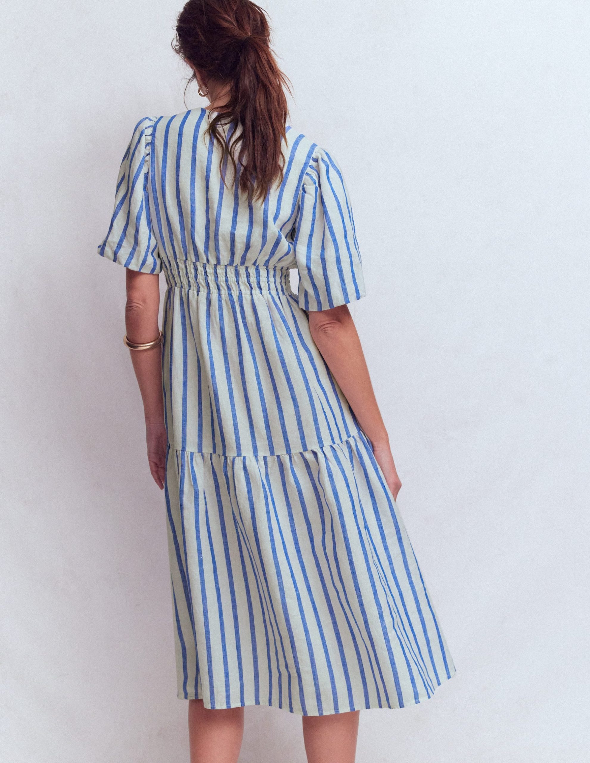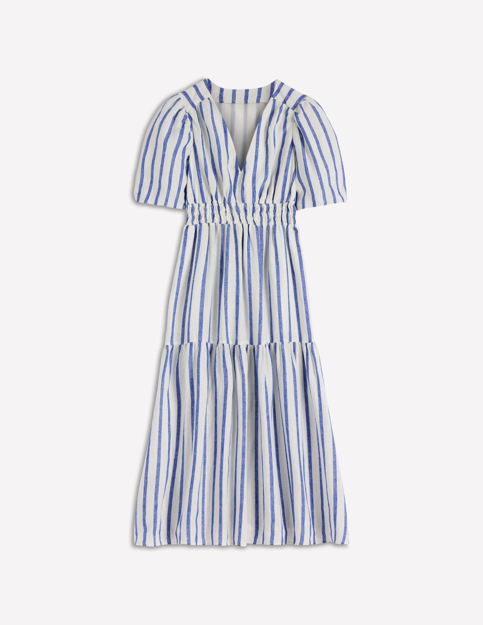 Irene Linen Midi Dress-Blue Stripe