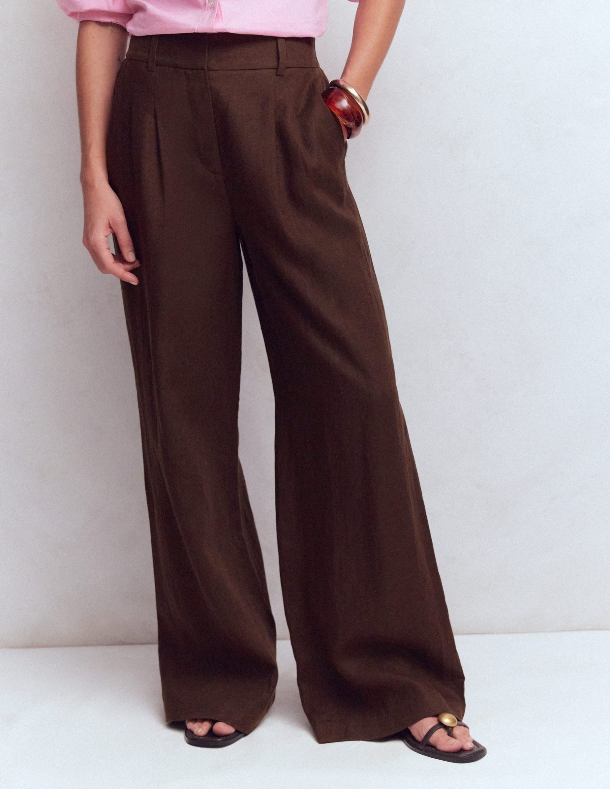 Same tailored wide-leg shape. new crisp linen fabric. Our Kensington trousers will see you through from now until summer and beyond. For a co-ord wedding guest moment. wear with the matching blazer.