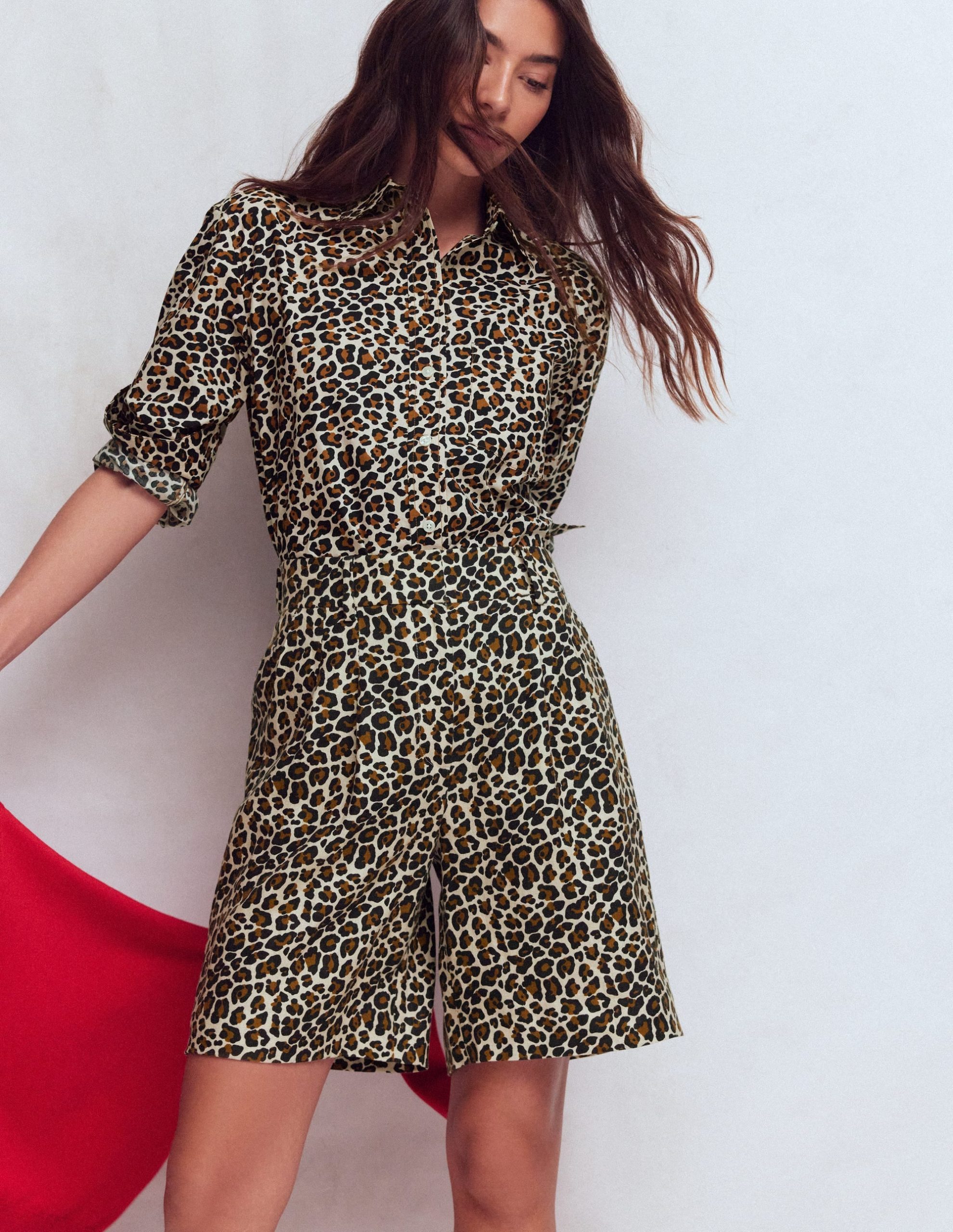 Kensington Linen Shorts-Almond Milk. Cheetah Pop