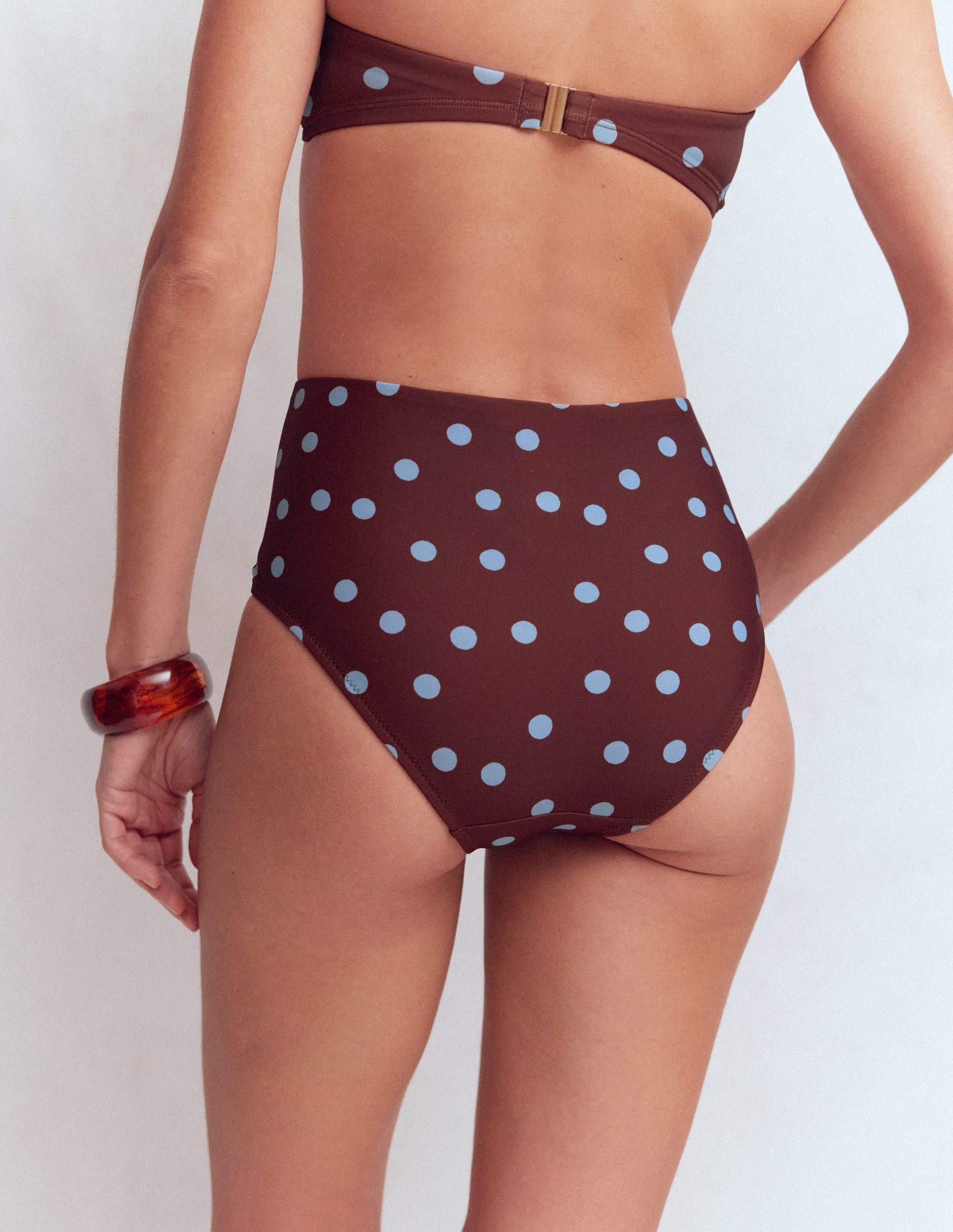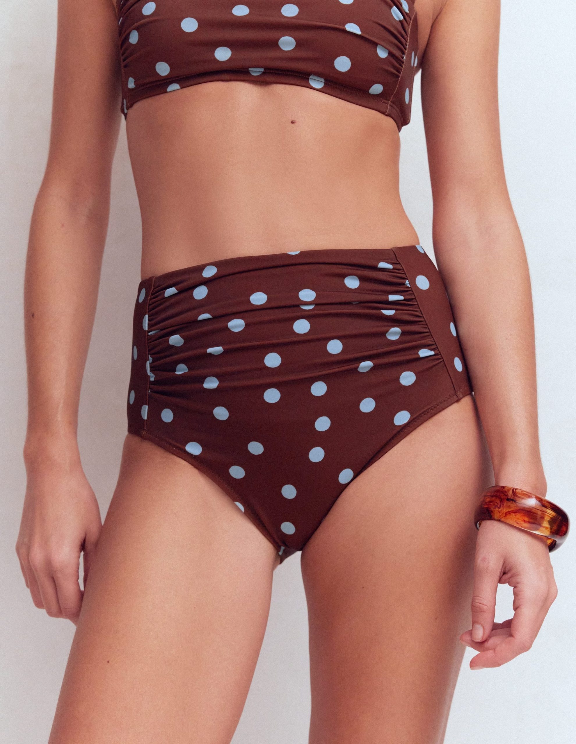 Kythira Ruched Bikini Bottoms-Chocolate And Blue Painted Dot