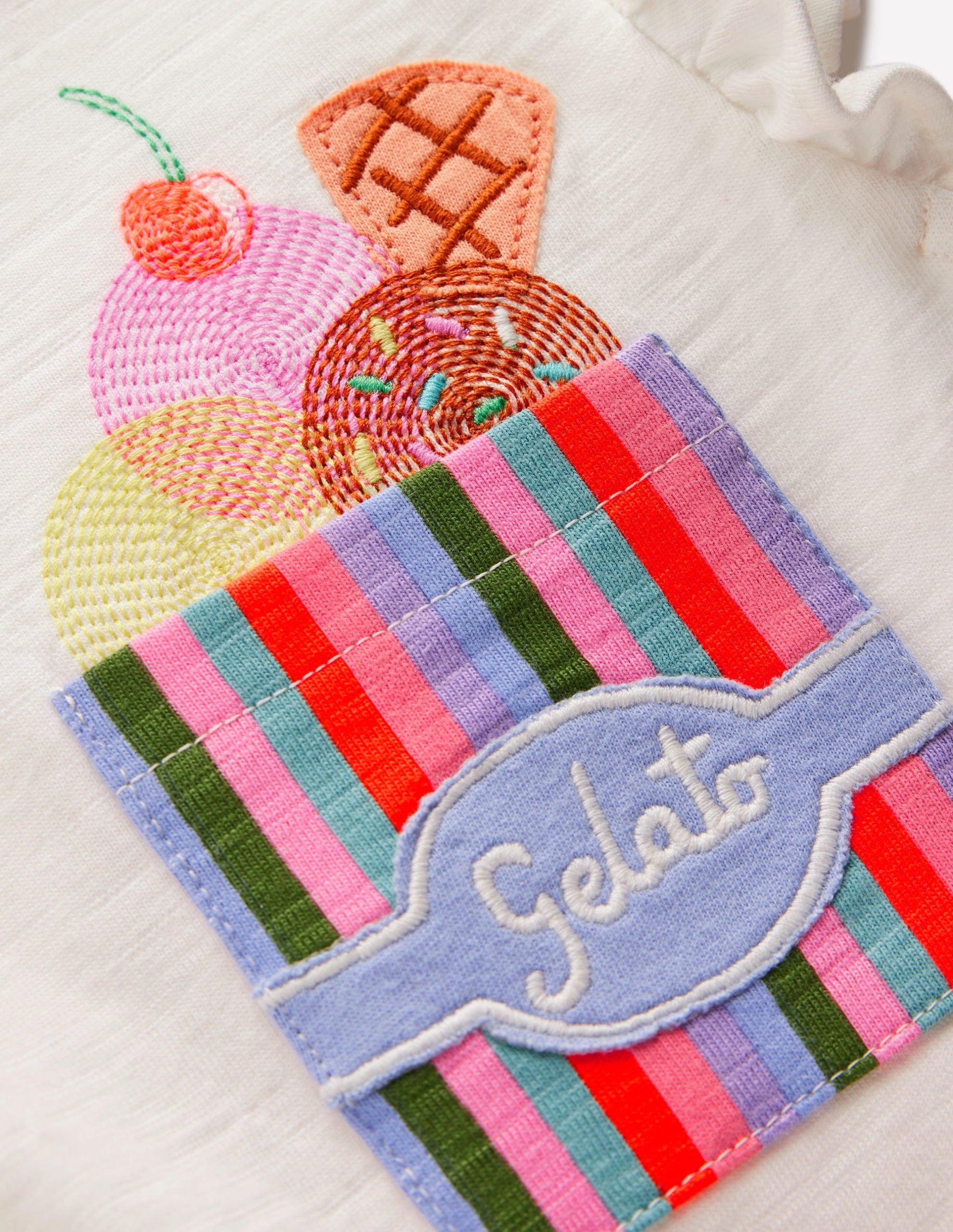 Did someone say ice cream Summer is the season for melty cones with sugary sprinkles and it makes sense Minis wear what they love. This 100% cotton dress has flutter sleeves (and hem). a drop waist and a pocket to point to when it’s time to order.