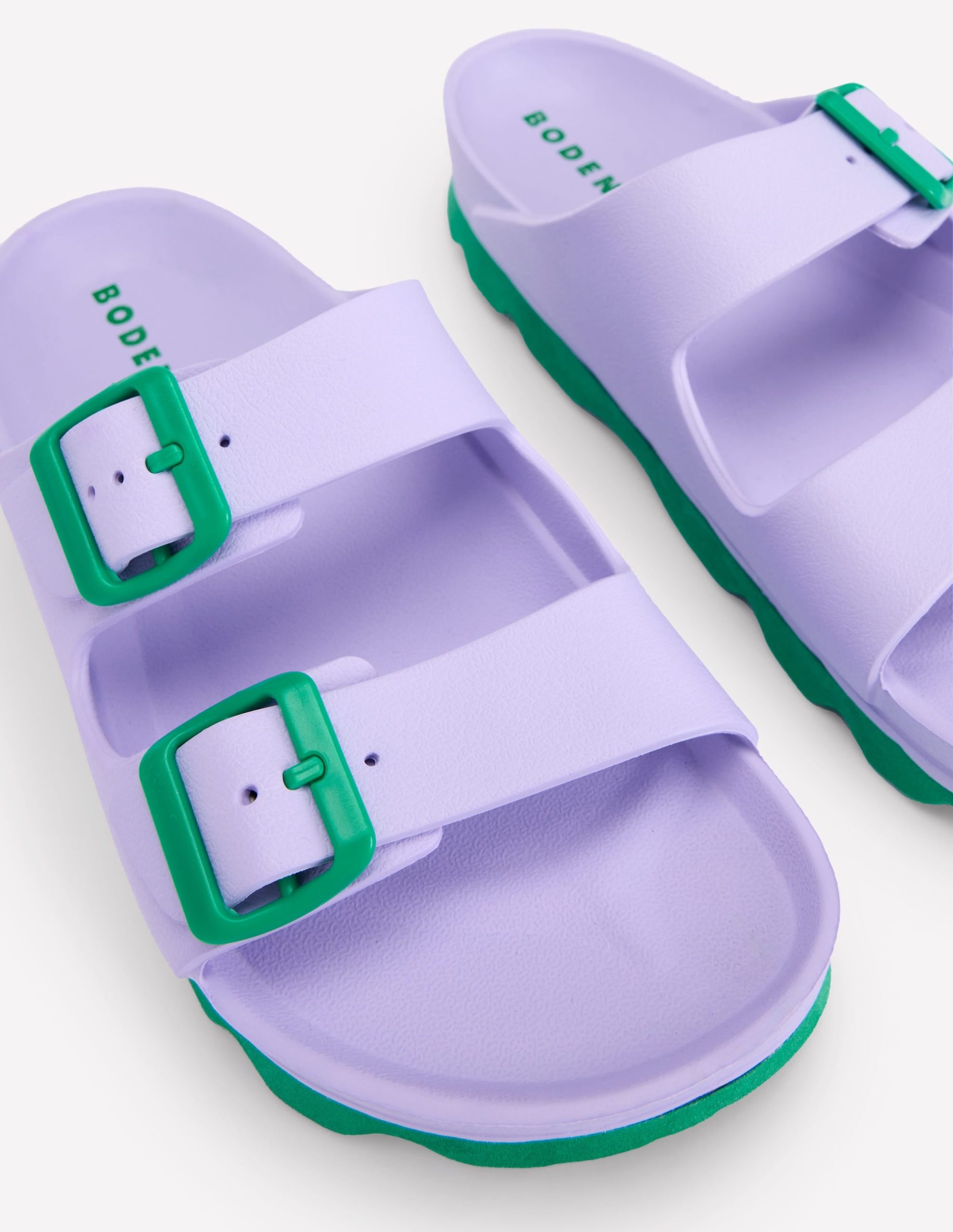 The Lyla sliders are built for comfort, with chunky cleated soles (no slipping ānā sliding here) and a double strap with buckle fastening. And the vibrant colourways? The Boden signature style of course.