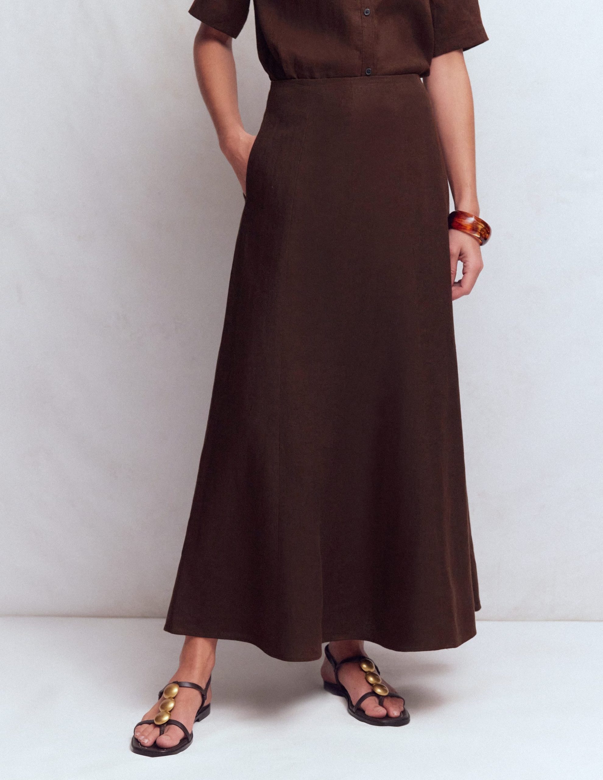 Miriam Linen Maxi Skirt-Bitter Chocolate