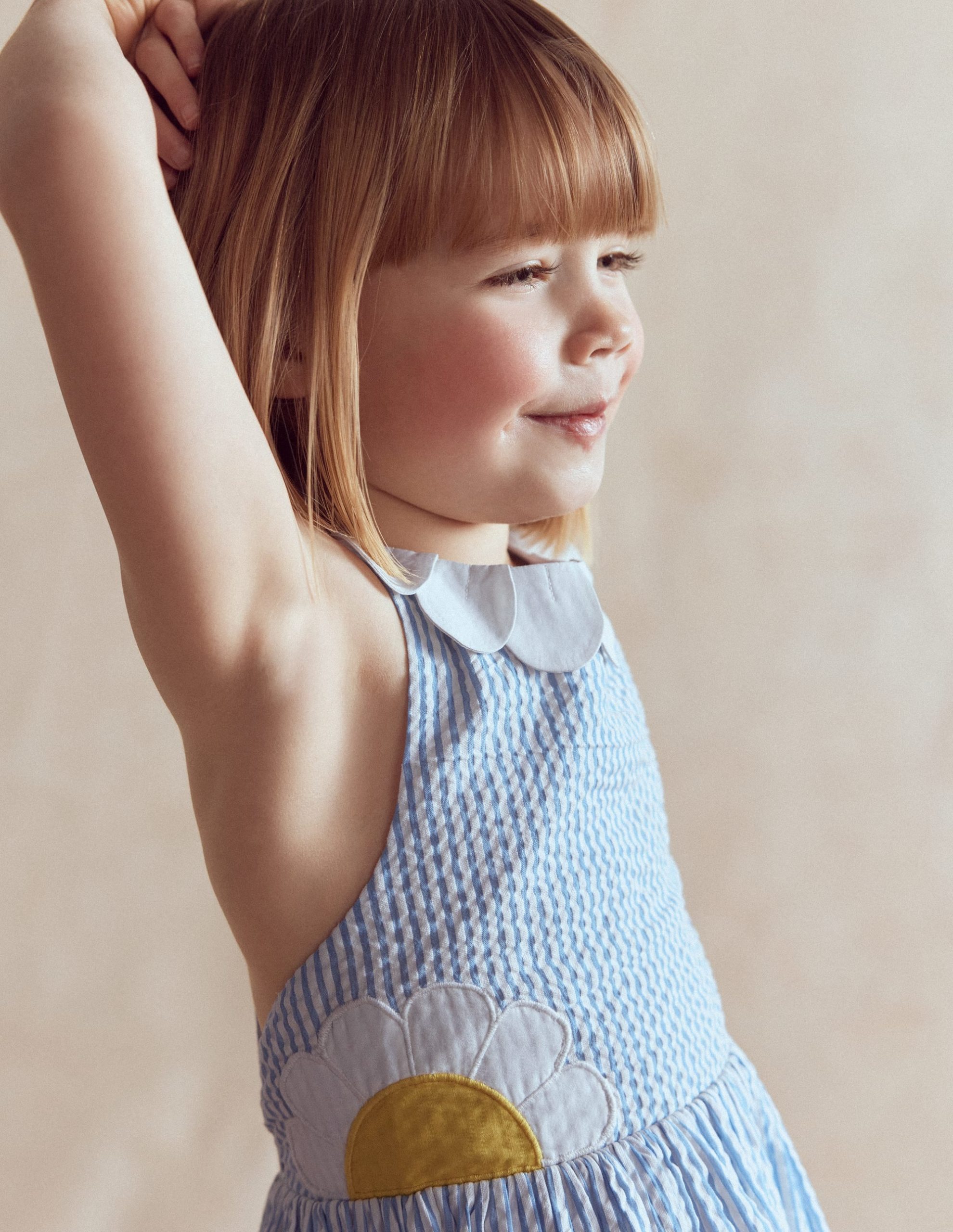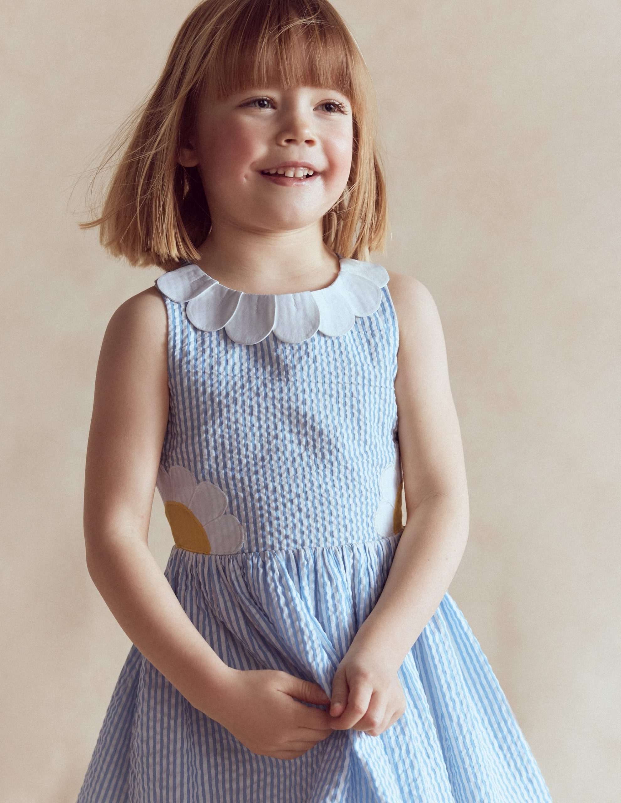 A sunny and bright dress to put a spring in Mini’s step. Crafted from pure cotton. it’s light and floaty with appliqu?? petals on the neckline and daisies on the front and back (where the straps cross over). Perfect for Easter celebrations and beyond.