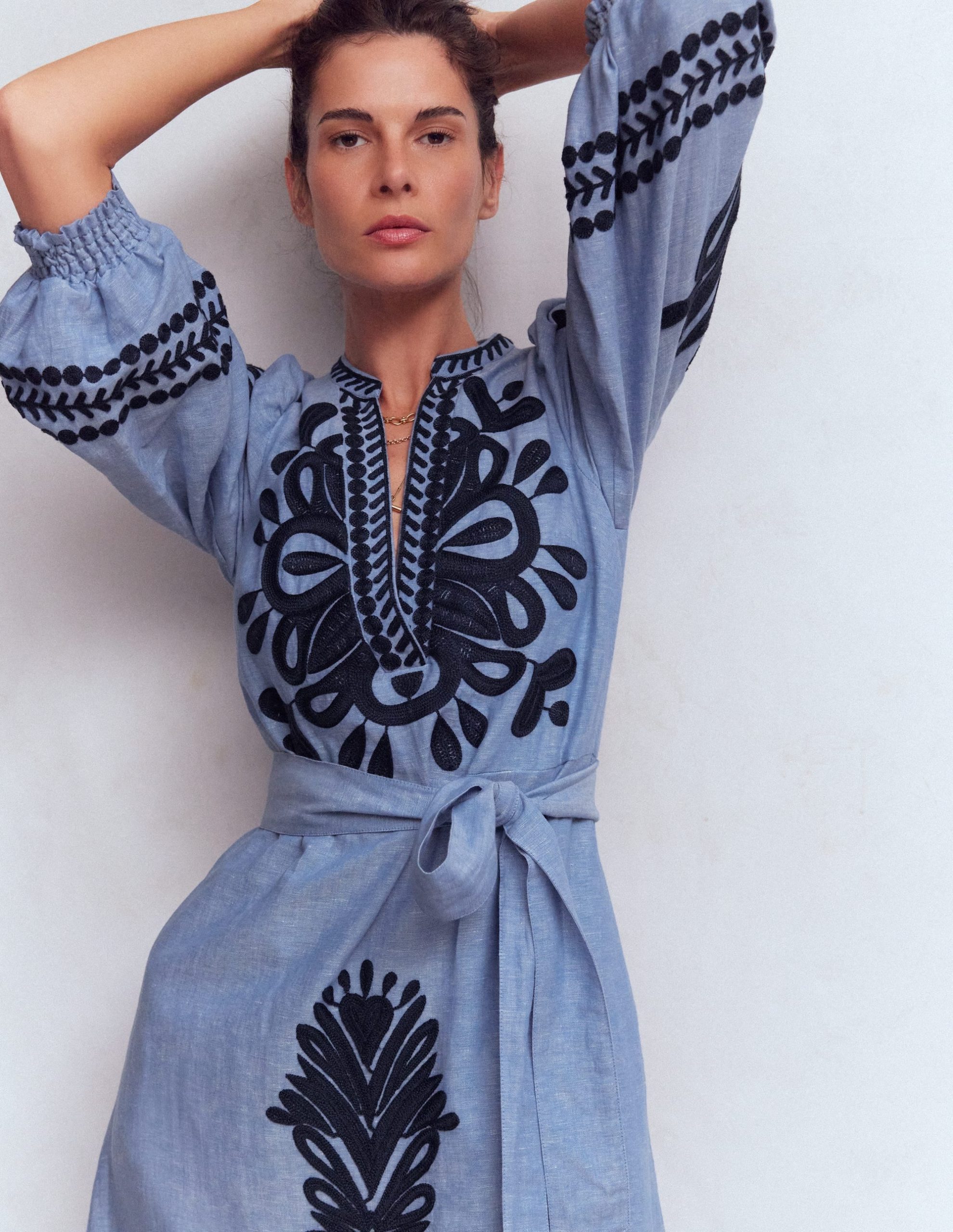 Octavia Linen Dress-Embroidered Chambray