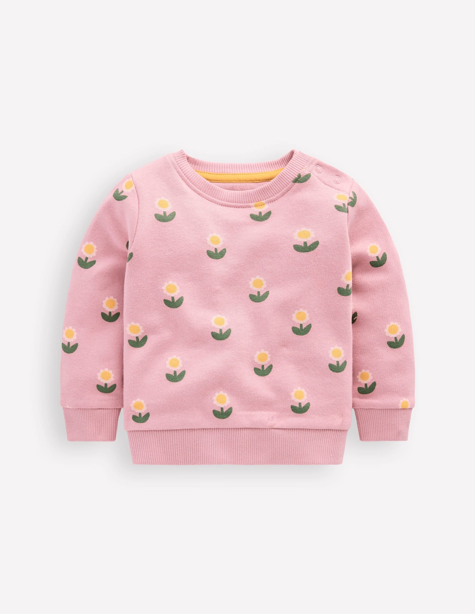 The fresh floral print on this cotton sweatshirt will brighten Mini’s wardrobe and day. And if after running around things get too warm, the shoulder poppers make it easy to get on and off.