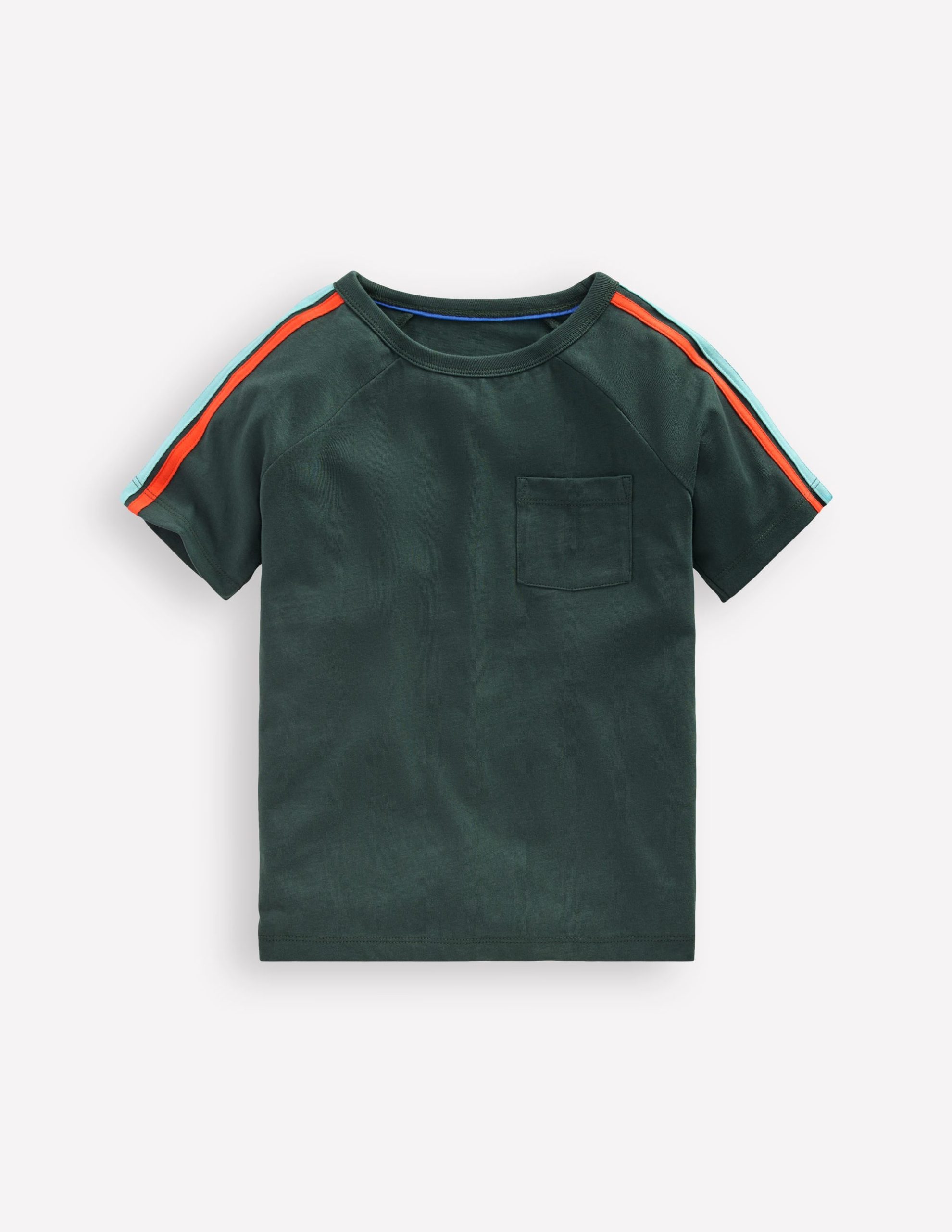 We’ve taken a comfy cotton raglan T-shirt with a patch pocket and added some go-faster rainbow stripes. Your Mini will be zooming around the park.