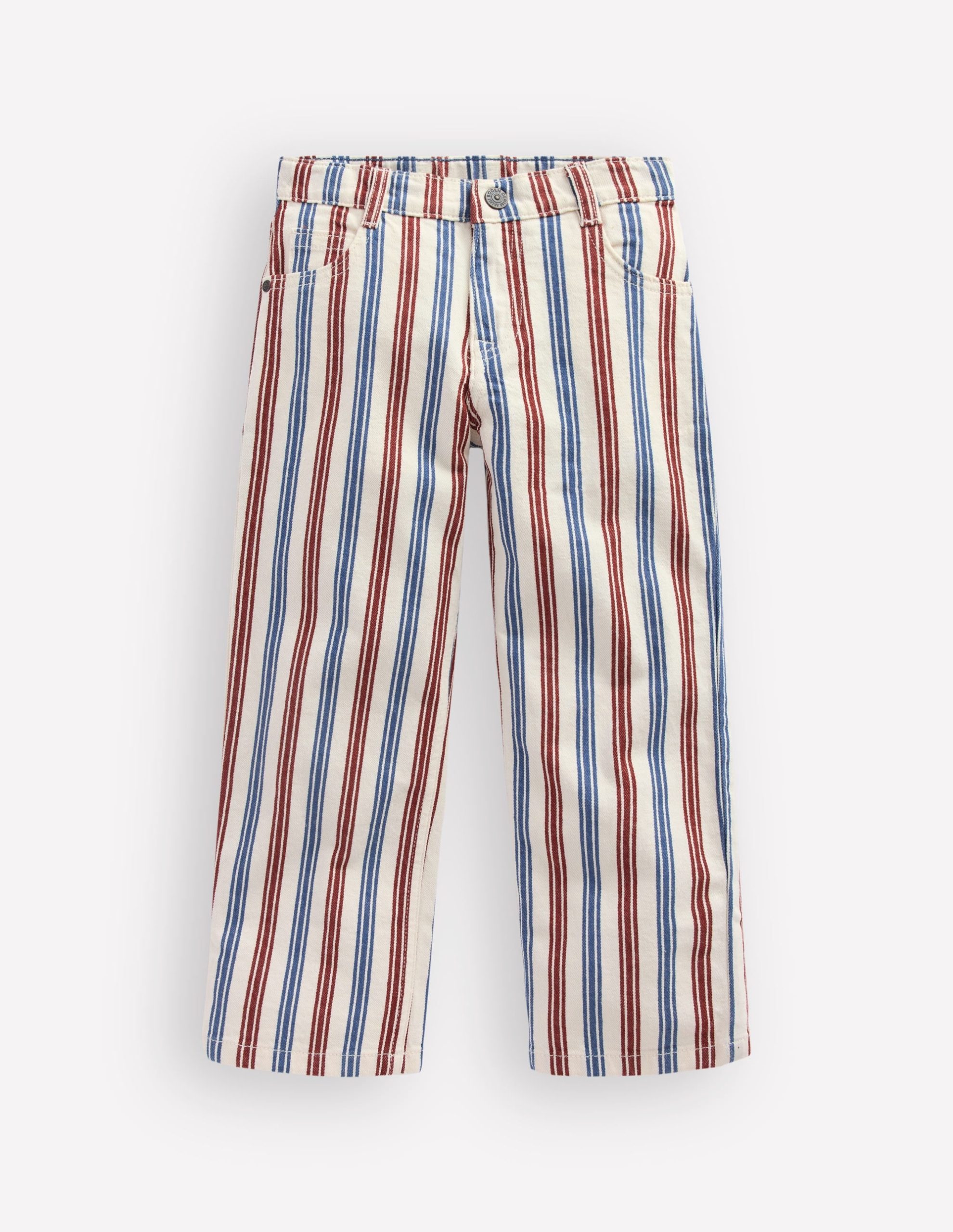 Jeans don’t get much cooler than this. With their relaxed fit and soft stretchy cotton. they’re as comfy as they are fun. Choose from plain. a little stripy or a lot stripy (with a matching jacket). Roll up and the down the legs to get the best fit.