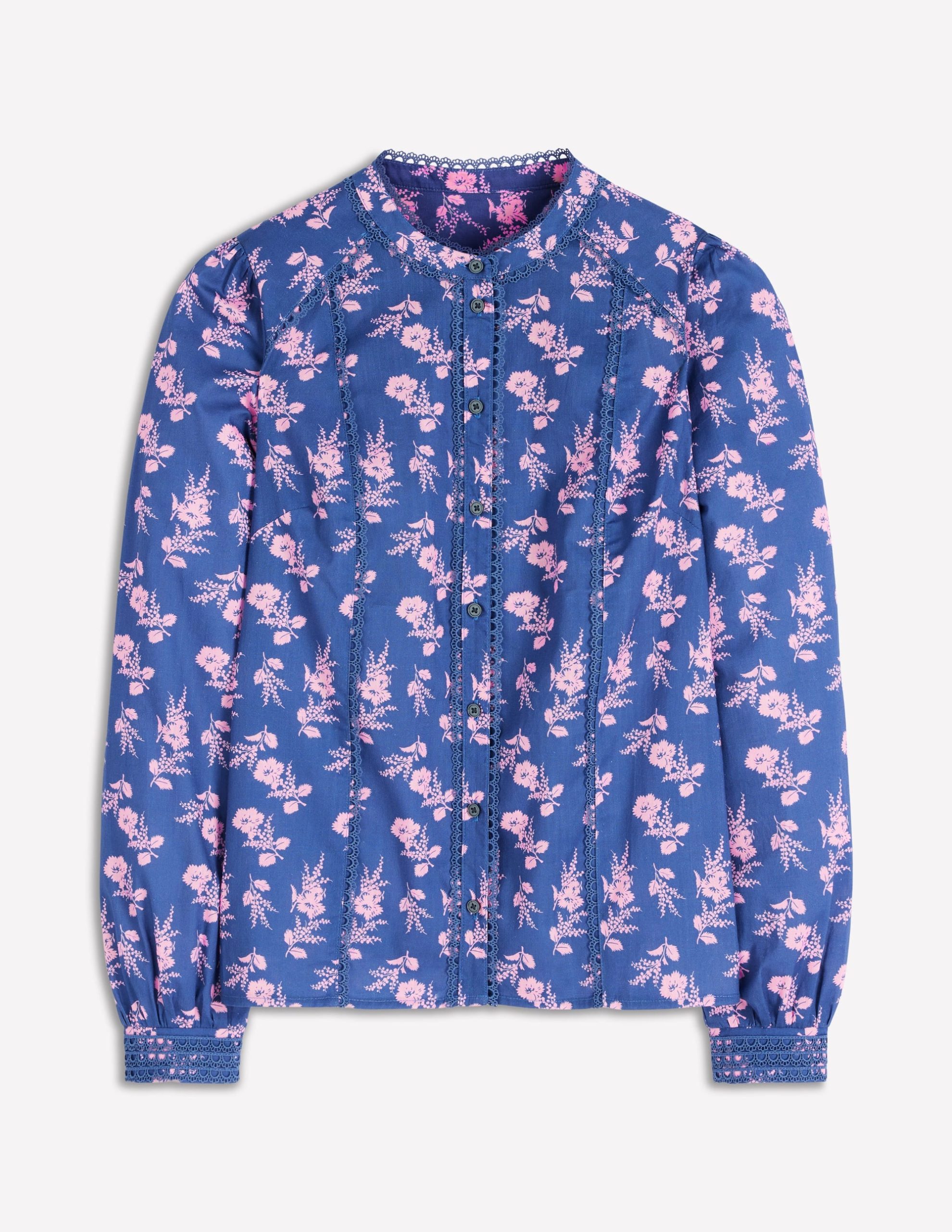 Much like our silk Rhea top, this features a delicate embroidered trim and a collarless cut. We’ve designed it in pure cotton for a more casual feel that still works for after-work drinks.