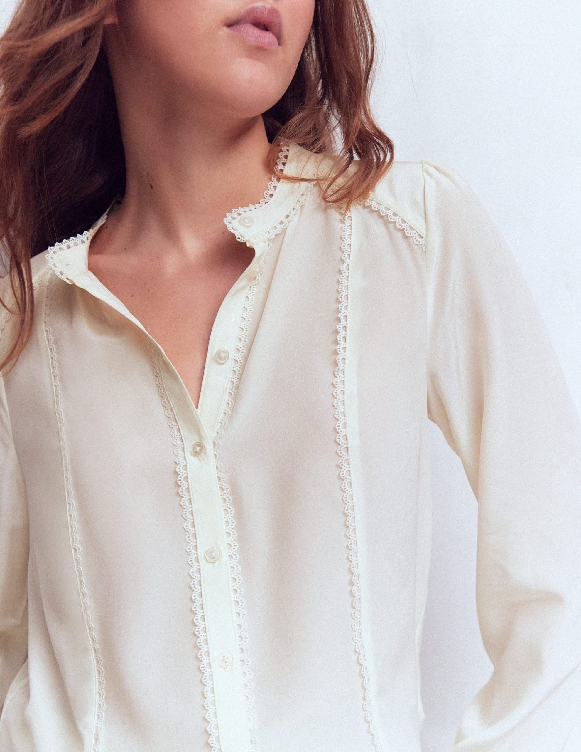 Your hard-working wardrobe deserves a little luxury. Rhea delivers as a 100% silk top with a delicate embroidered trim and simple collarless cut. Choose from a variety of colours and prints. It’ll go with everything and feel soft on your skin.