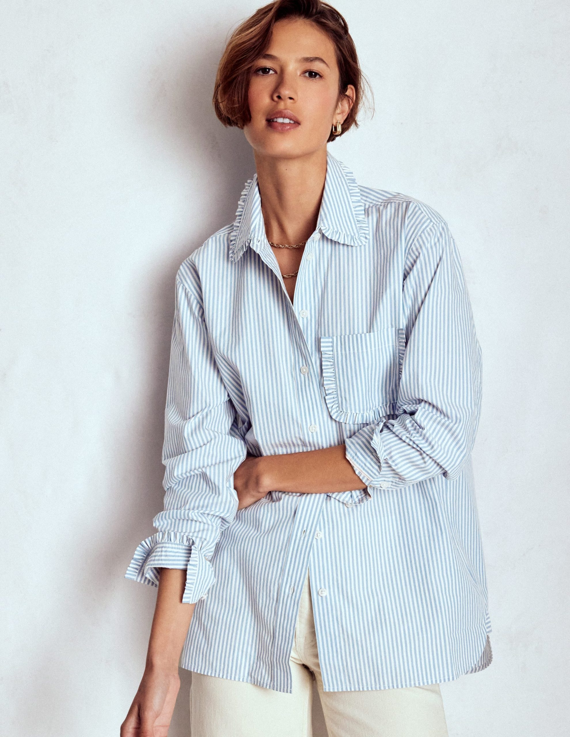 Our Sadie relaxed cotton shirt is the basic all wardrobes need. The relaxed fit means it works just as well with leggings for the school run as it does with wide-leg trousers for work.