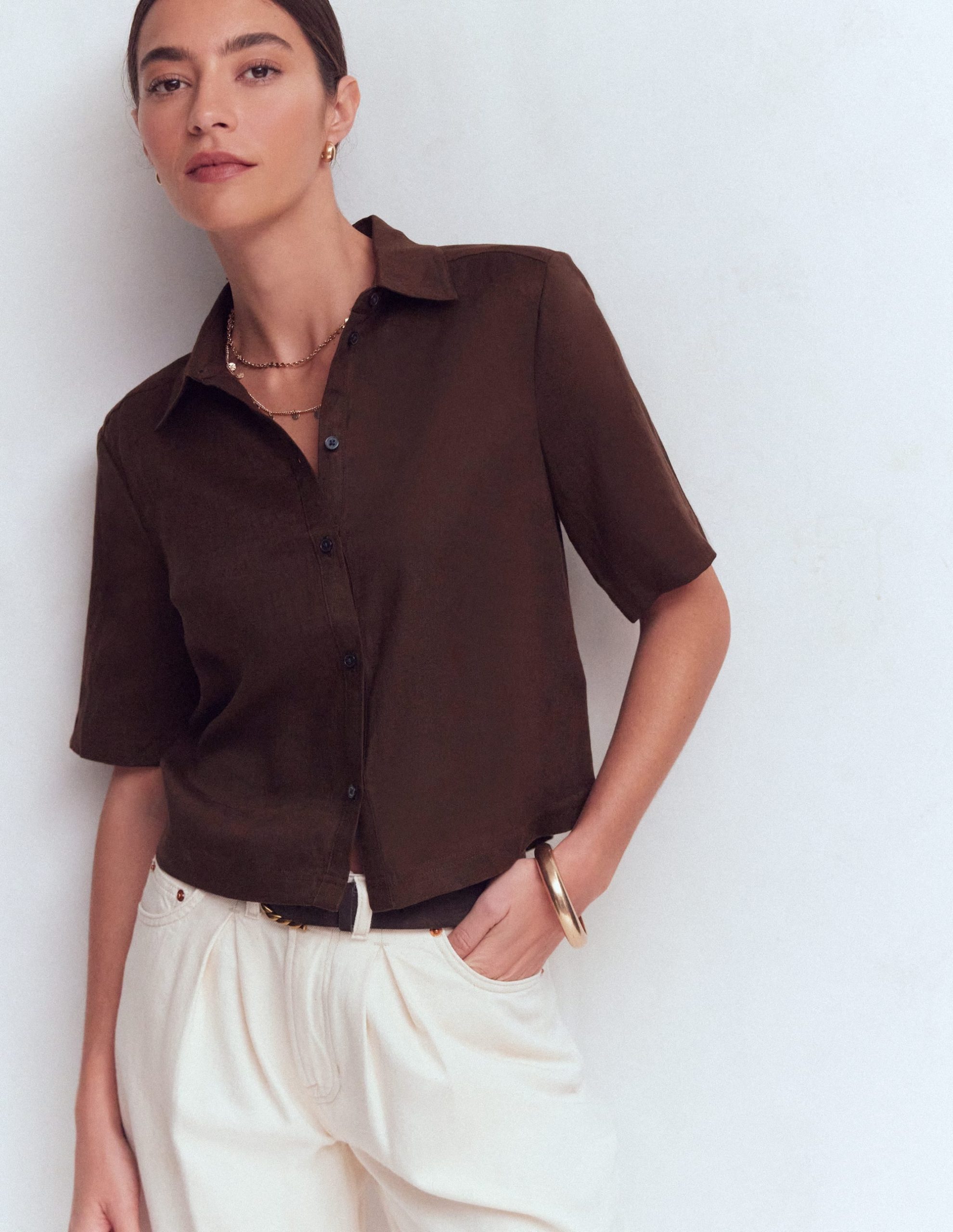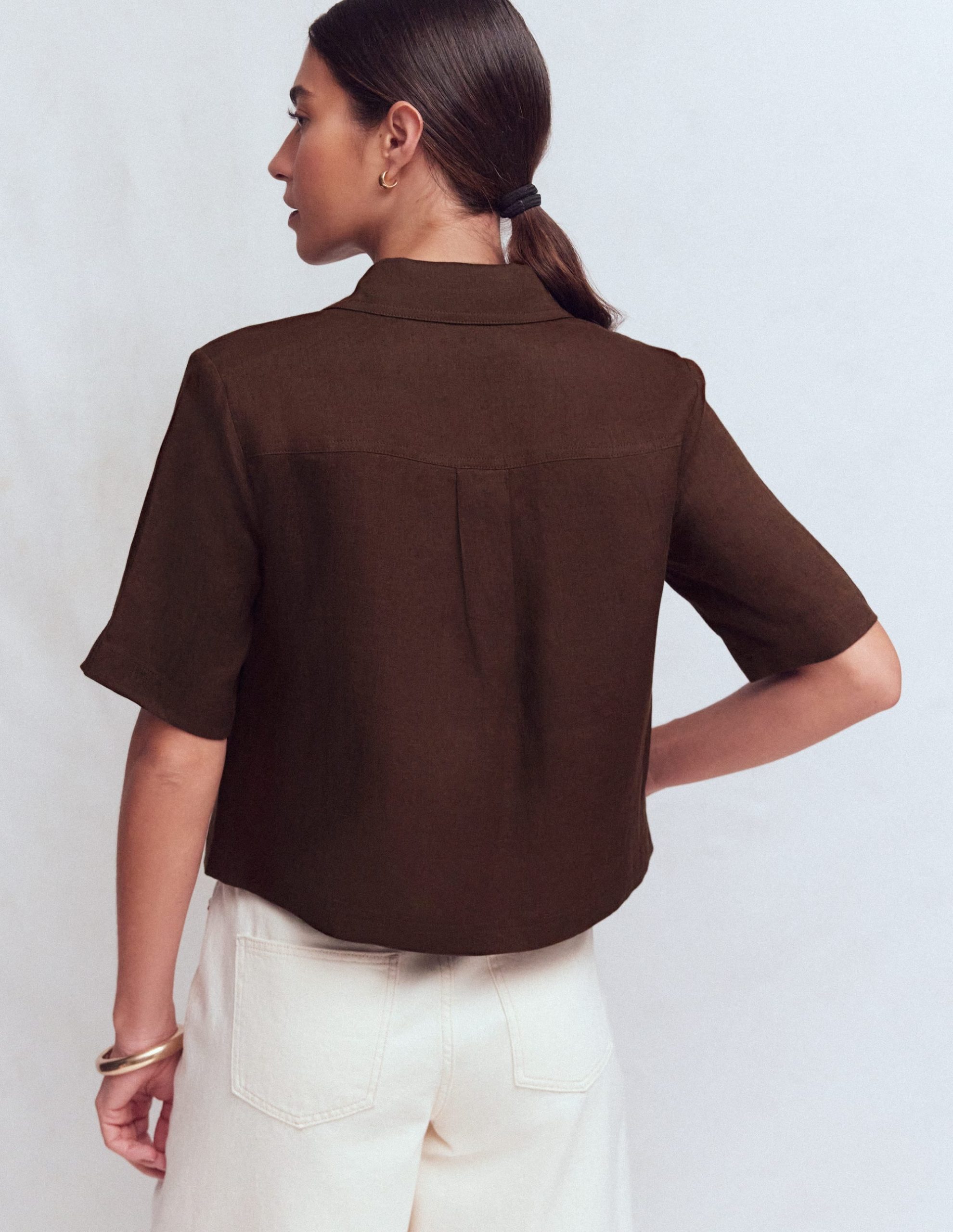 Short Sleeve Linen Shirt-Bitter Chocolate