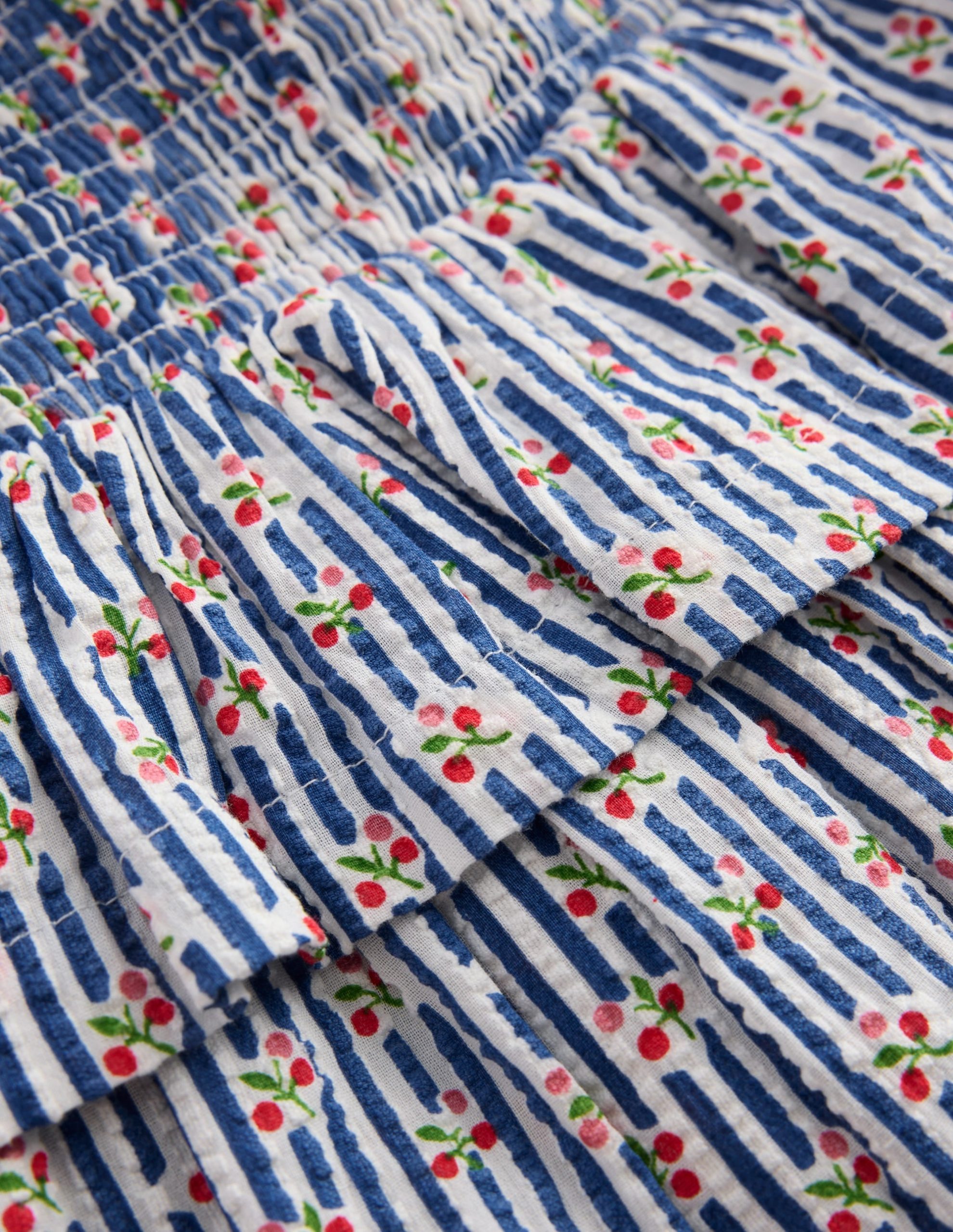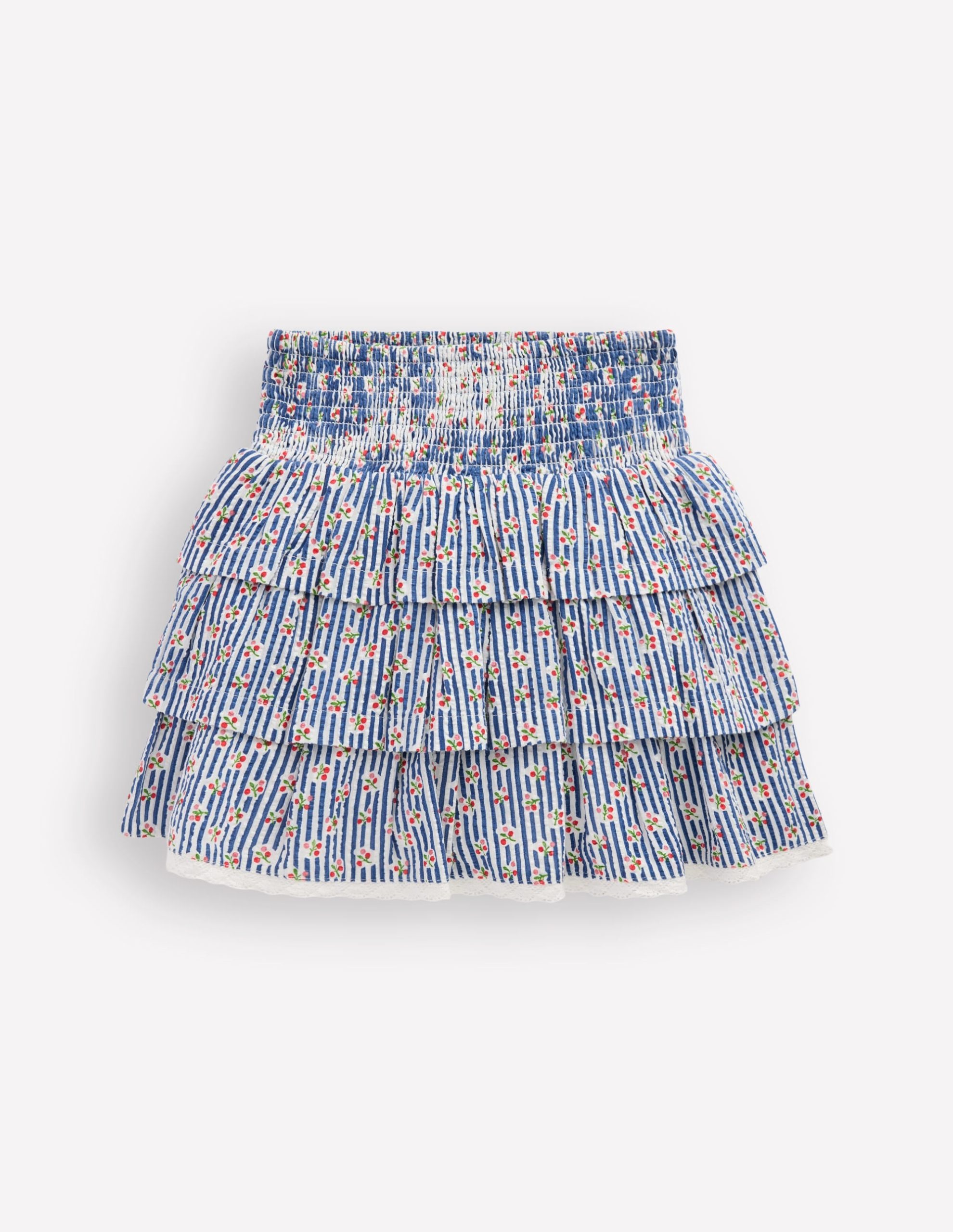 Smocked Waist Ruffle Skirt-Bluejay Cherry Stripe