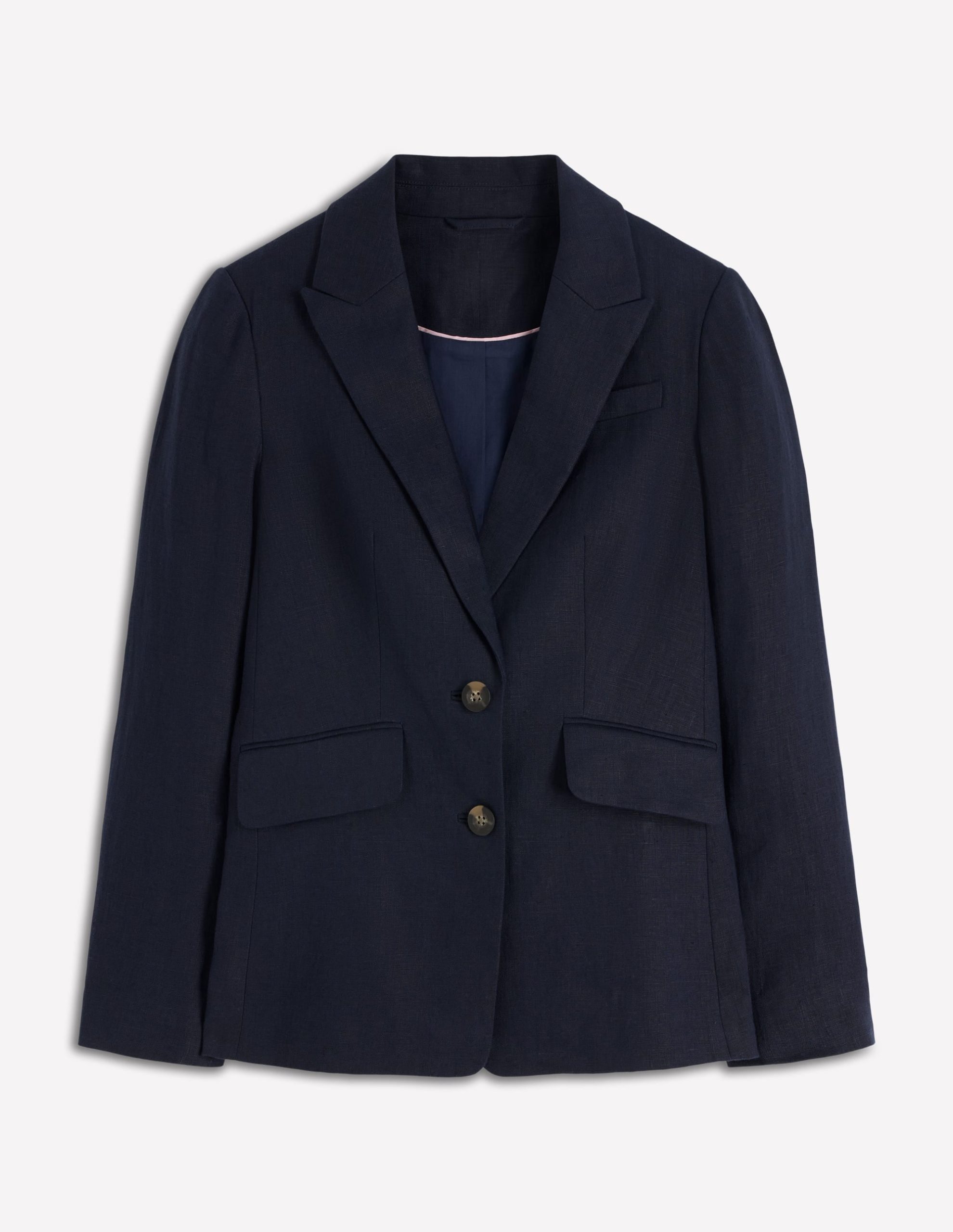 Our Stamford blazer is a lesson in classic tailoring. Crafted in linen. it’s cut to a semi-fitted. simple-breasted shape with a revere collar. sleeves. contrast piping and welt pockets ? details that wouldn’t look out of place on Savile Row. we reckon.