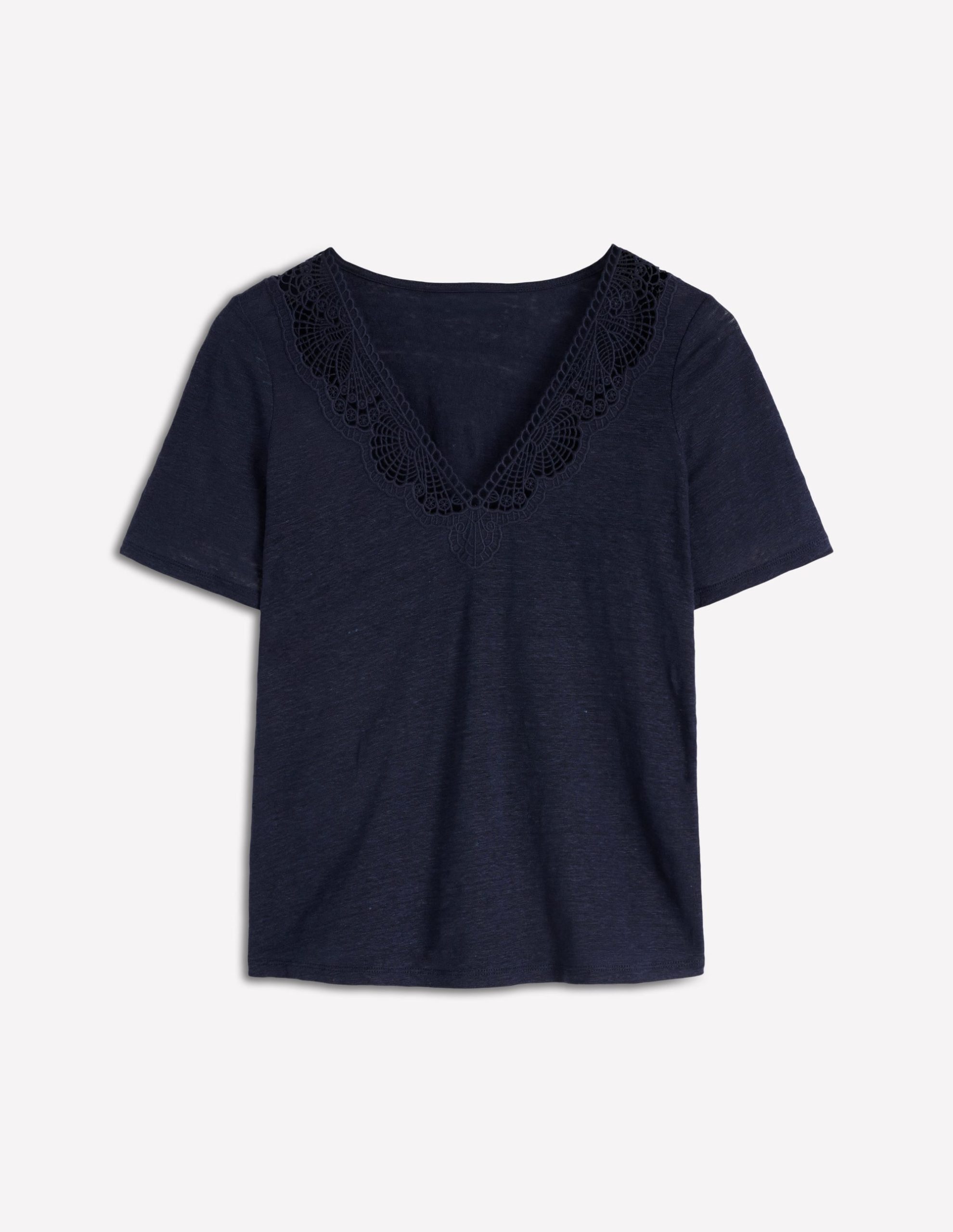 Tara Lace Trim Linen T-shirt-Navy Blazer