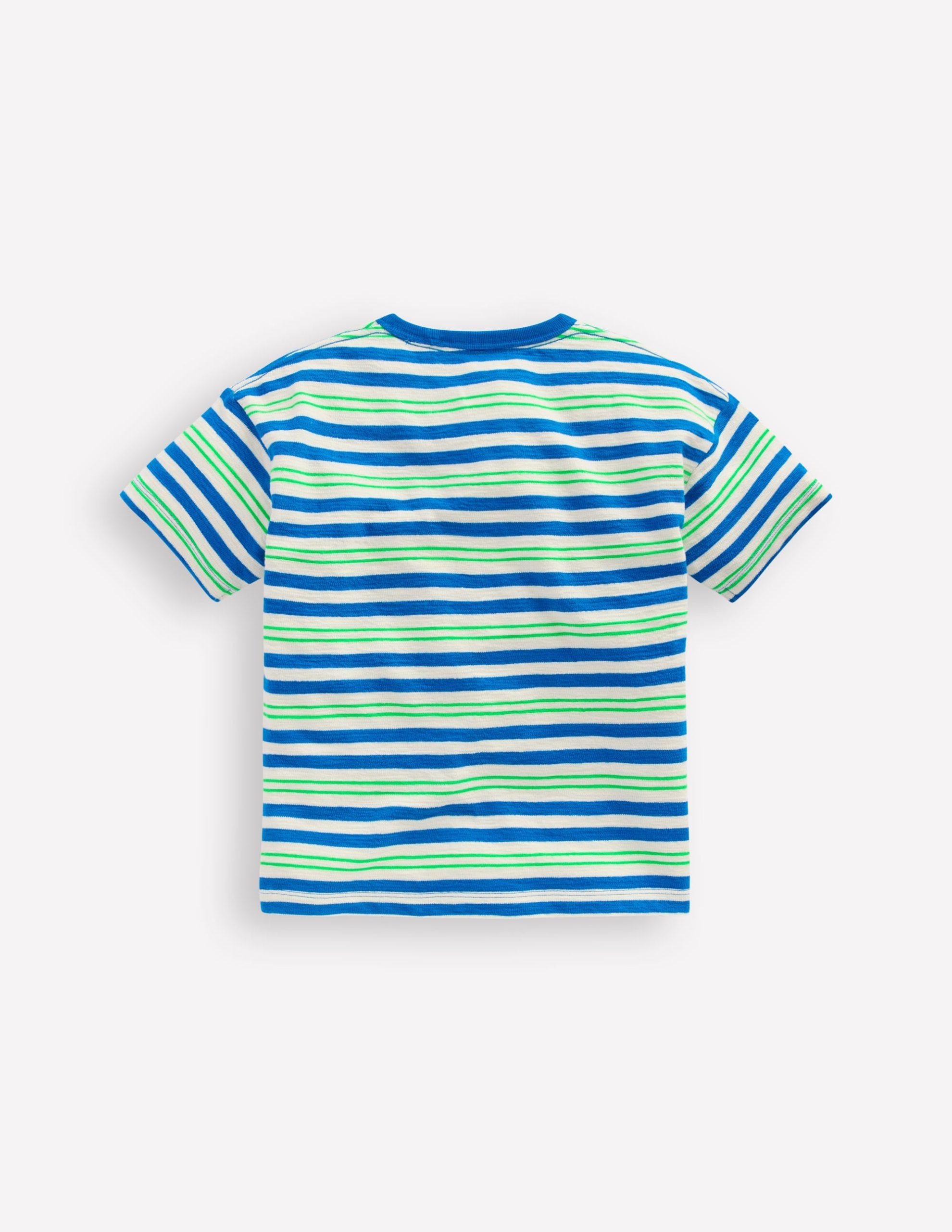 Minis will embrace stripe-tacular days in this soft cotton T-shirt. The dropped shoulders and relaxed shape make moving easy and it’s sturdy enough for outdoor adventures. Of course we’ve added bright and brilliant colours. Easier to spot than Wally.