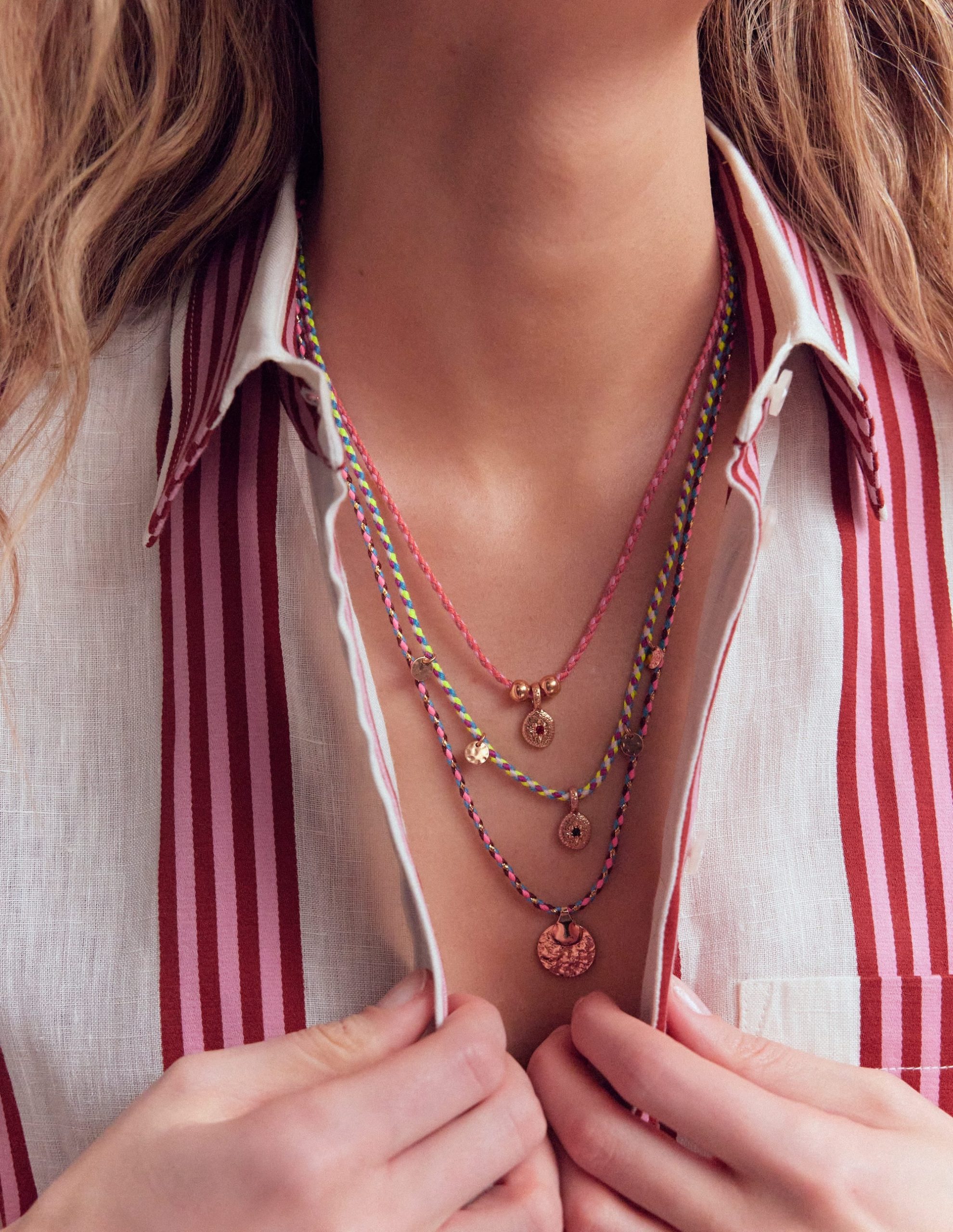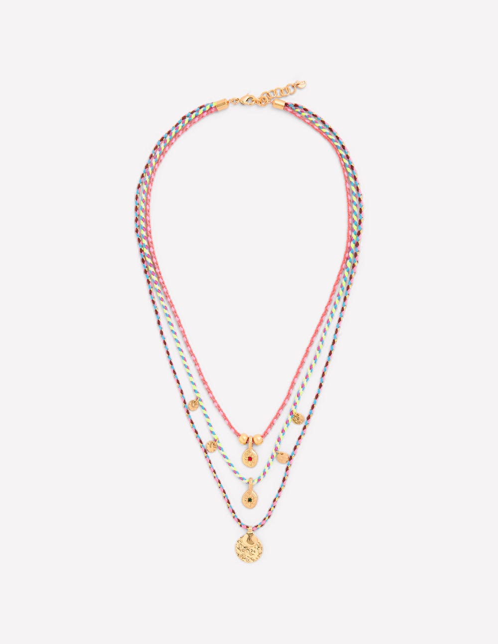 Where’s the beach We say it’s anywhere when you’re wearing this colourful layer necklace. Three-in-one-clasp it’ll save you time accessorising and look great with everything from bikinis to floaty dresses. The gold discs will catch the sun wherever you go.