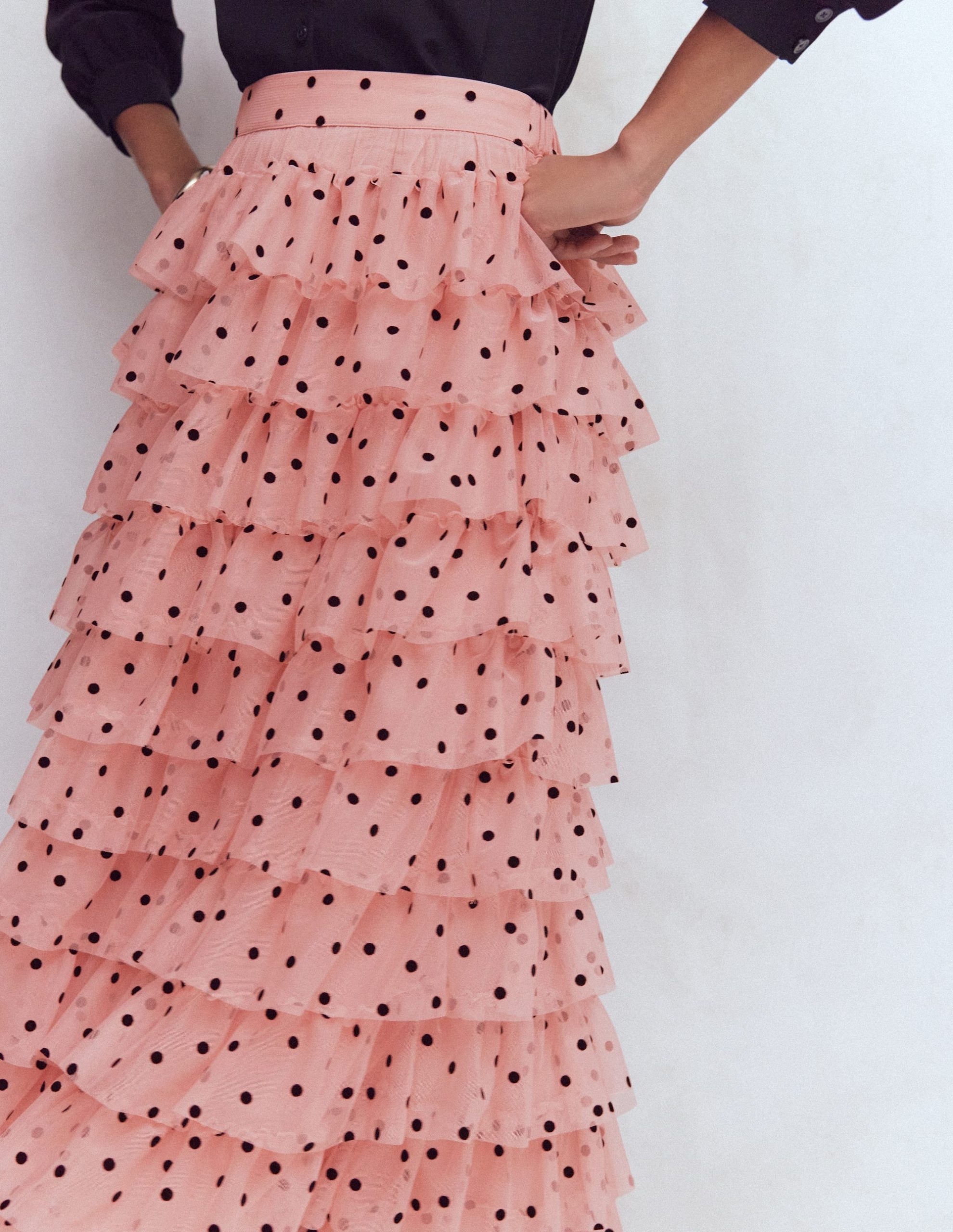 Tulle Tiered Skirt-Pink Painted Dot