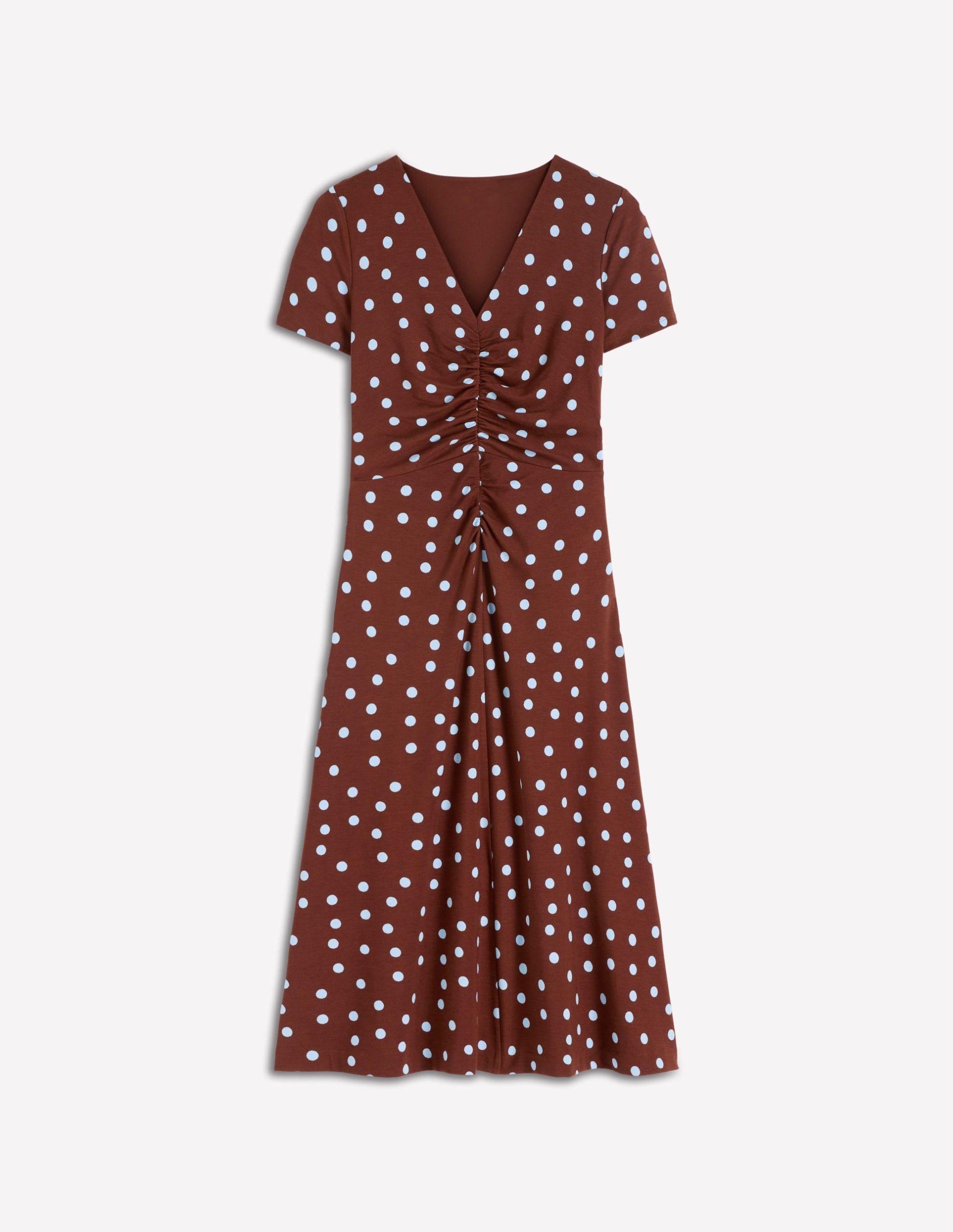 Una Ruched Front Ponte Dress-Raw Umber. Painted Dot