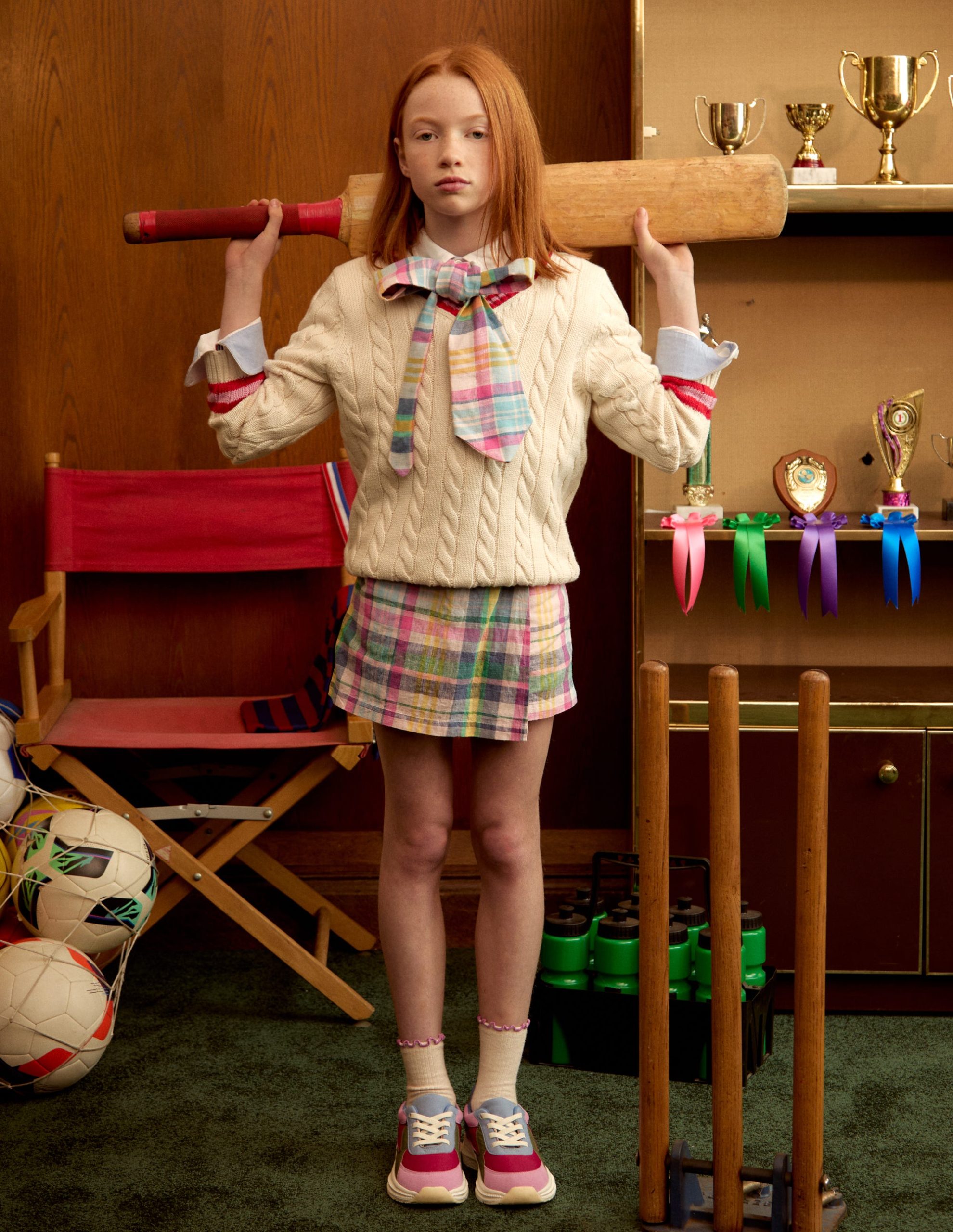 For carefree play cable knit is always a good idea. This classic cricket-style jumper is crafted from breathable cotton and we’ve added bold stripes to the V-neck and cuffs. A season-spanning style for breezy beach games and park fun. Cricket bats optional.